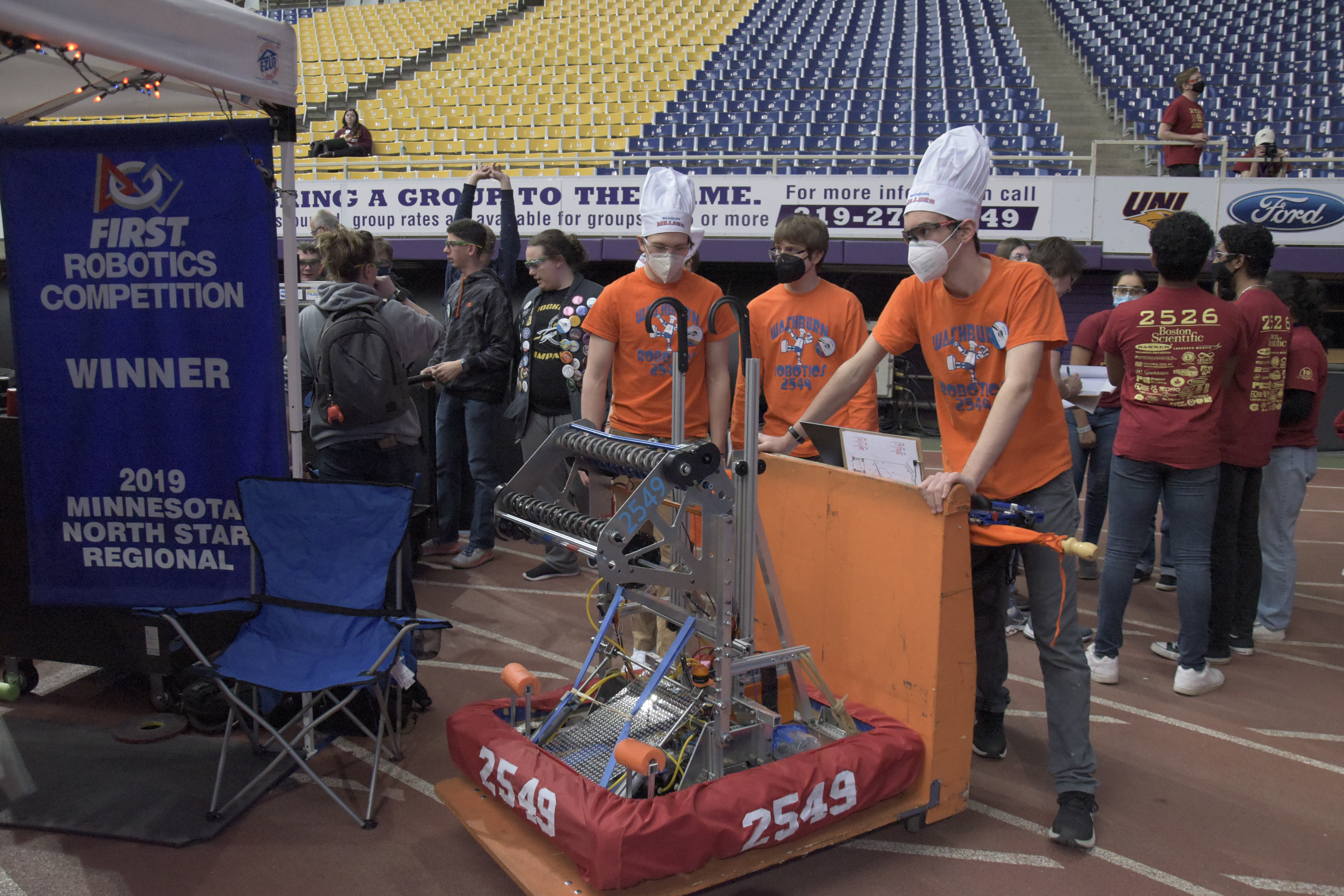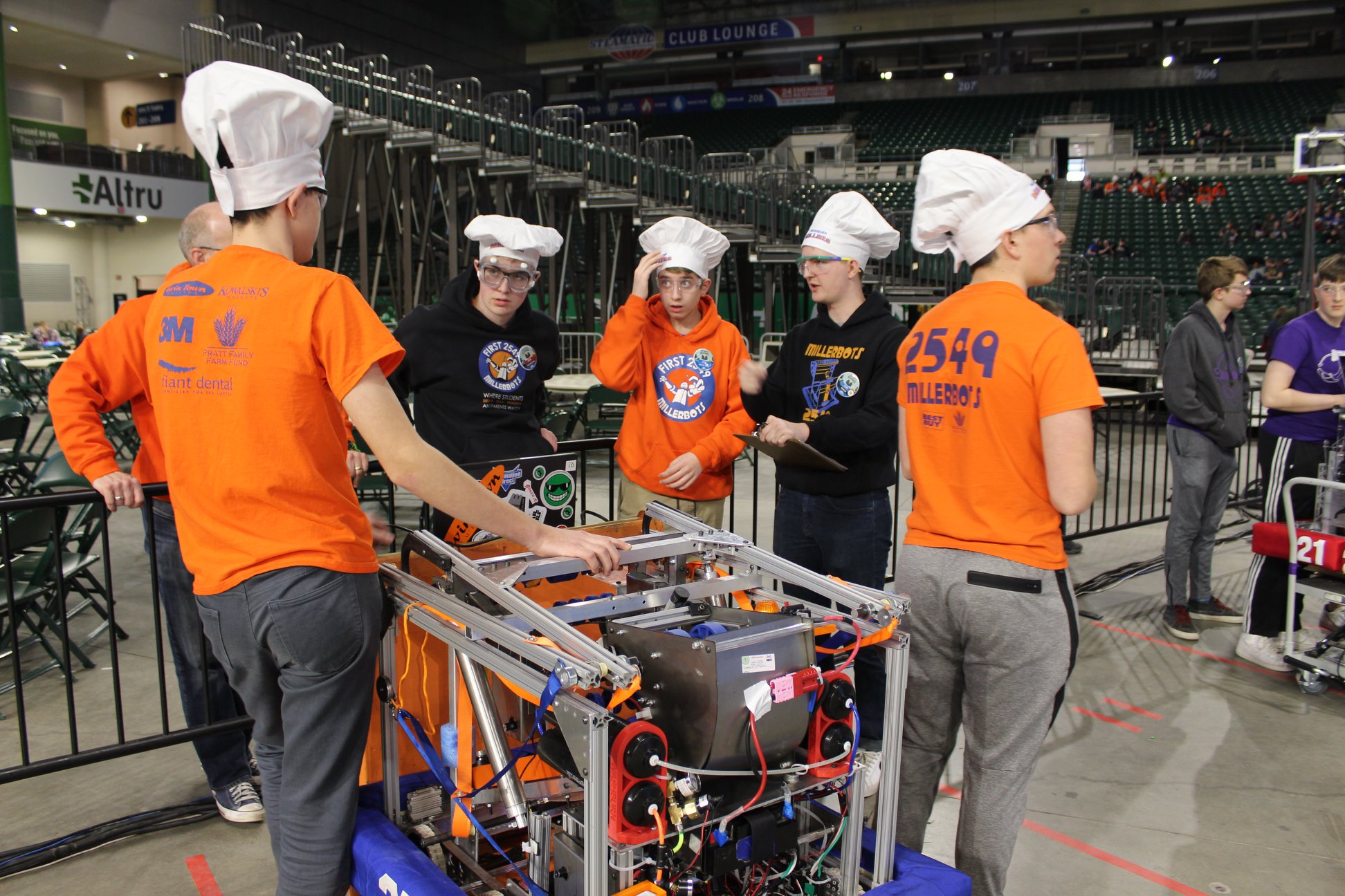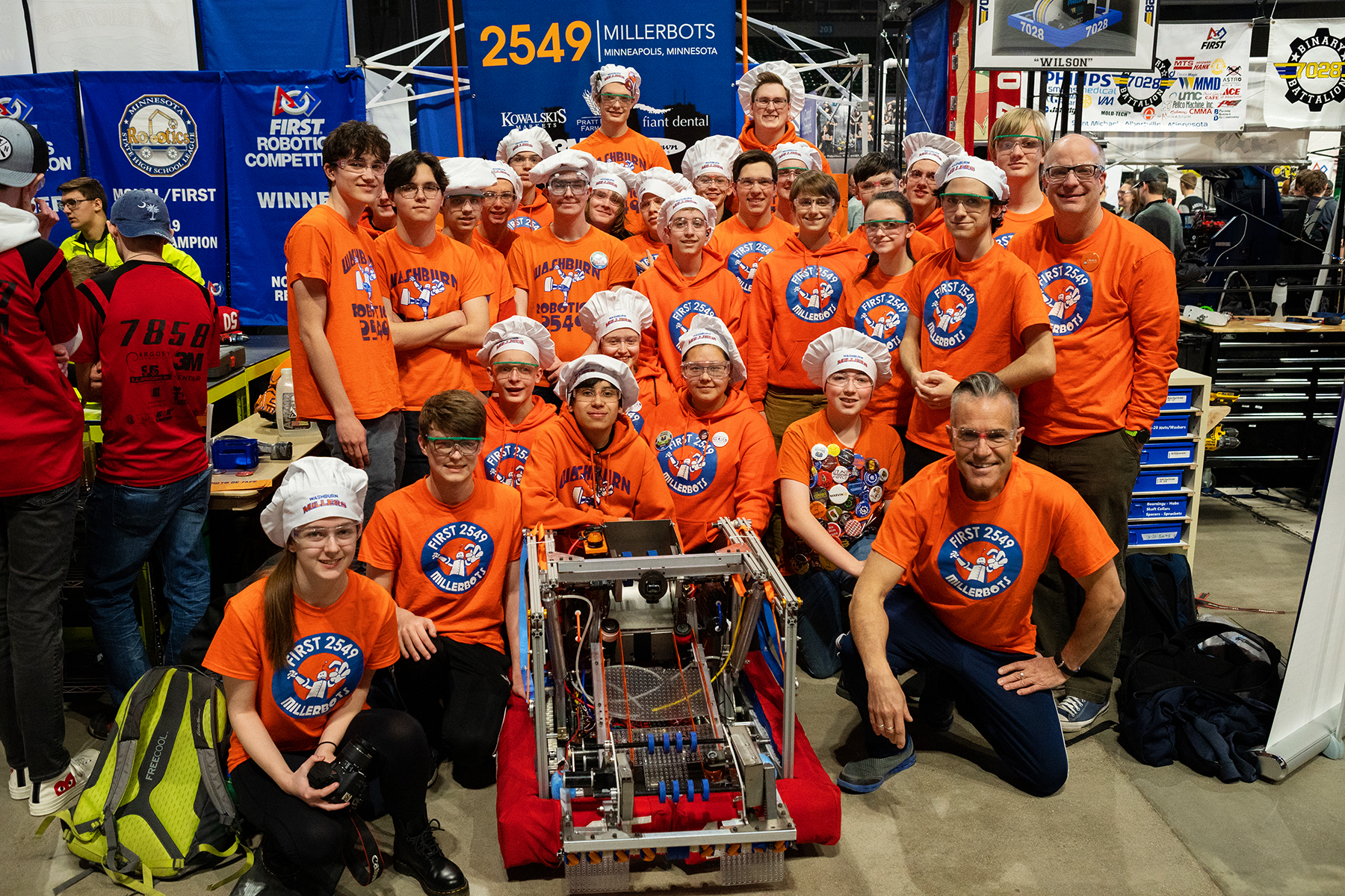 2022 Iowa robot being carried off the field2022 robot making some shots into the lower hubIowa Regional Emcee waving the Millerbot flagDrive team heading to a matchDrive team in the tunnel between the pits and the field in IowaDrive team going back to the pits after a matchSome downtime in the pitsTelling local kids all about our robot at the 2022 Iowa RegionalOur mascot joins drive team as they move the robot back to the pits2020 team2020 drive team strategizingRobot ready for action2020 robot on the fieldMascot at 2020 Great Northern2019 team2018 team2017 team2016 team2013 teamThe MillerbotOur mascot having funRejoicing2009 teamThe team at the 2008 World FestivalAt 2008 Worlds